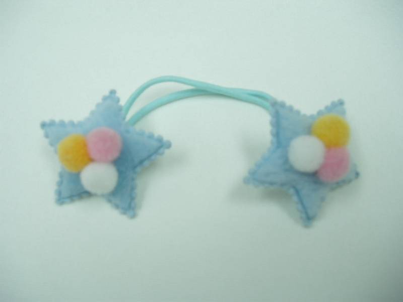 ヘアゴム、白XオレンジXピンクボンボン付星型