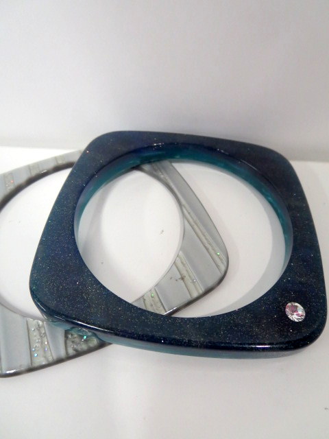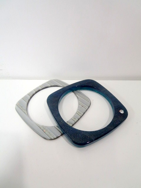バングル、ラメストライプ×ラメスワロフスキー、アクリルスクエア型2連